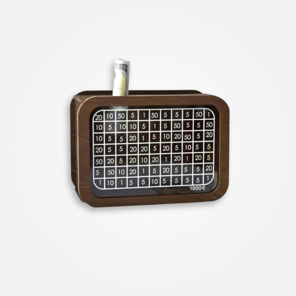 Son cadre en bois robuste et sa vitre transparente vous permettent de suivre l’évolution de votre épargne en un coup d’œil, rendant votre objectif encore plus motivant.