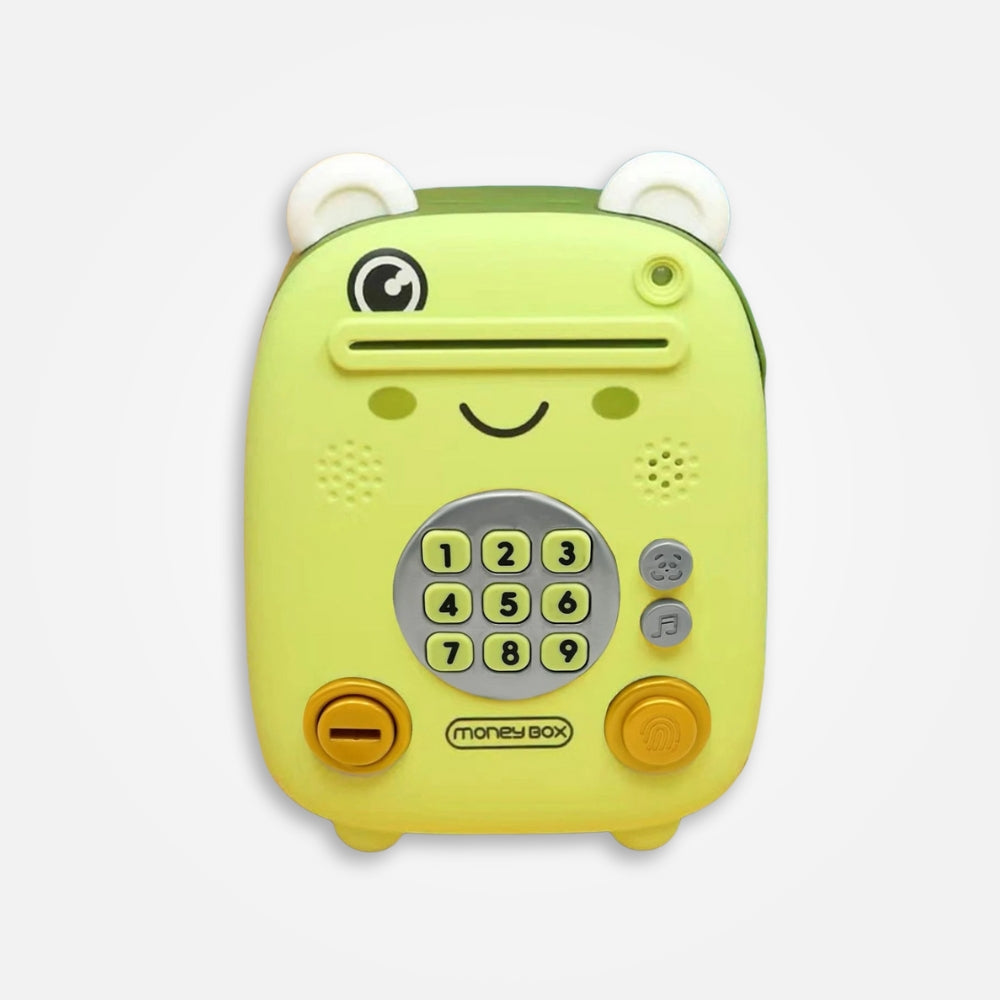 Cette adorable tirelire verte en forme de mini coffre-fort dispose d’une tête de grenouille sur le dessus, rendant l’apprentissage de l’épargne encore plus amusant. Grâce à son mécanisme innovant, elle aspire automatiquement les billets, joue de la musique et sécurise l’argent avec un code secret.