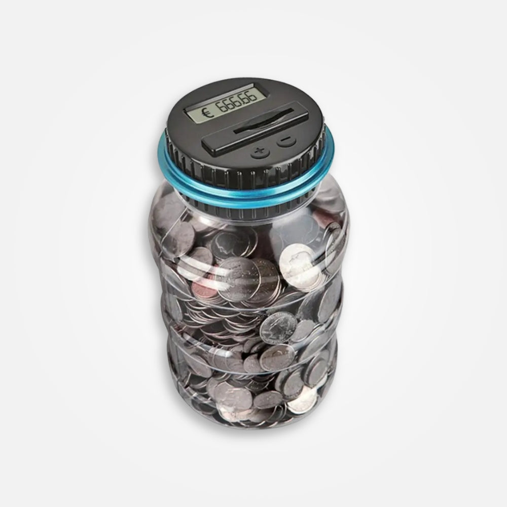Chaque pièce insérée par le bouchon est automatiquement comptabilisée et le montant total s'affiche instantanément sur l'écran numérique situé sur le couvercle. Son design transparent vous permet de voir votre argent s'accumuler jour après jour, vous motivant à atteindre vos objectifs financiers.